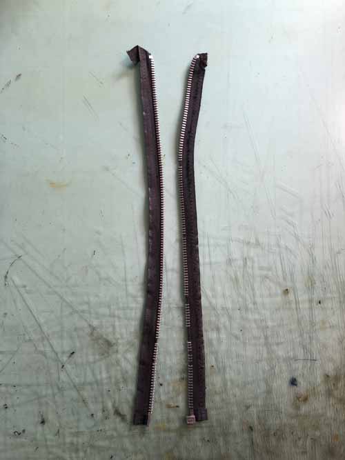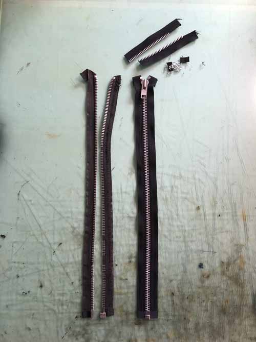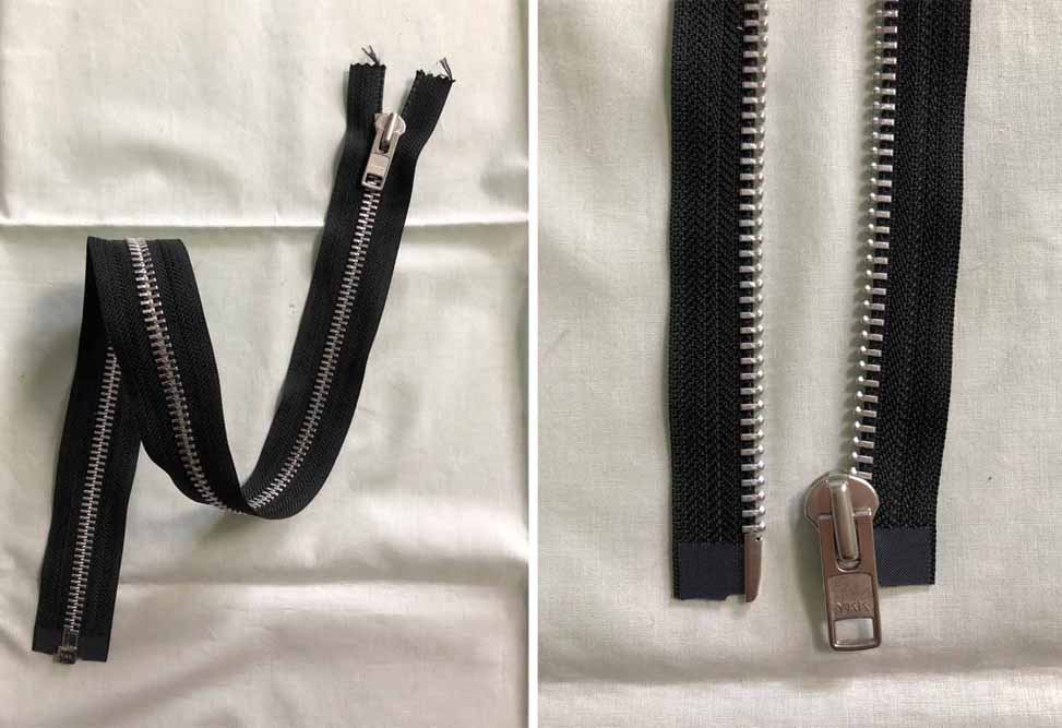 取り外したファスナー(右)と、長さを調整したYKK製ファスナー(左)。