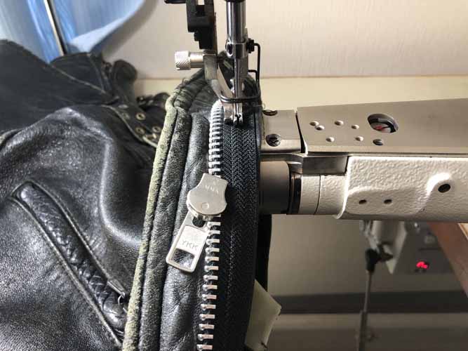 ※ダブルライダースは、右側ファスナー(メンズタイプ)が裏地側を貫通して縫い付けられていませんので内側からの縫製が必要となります。