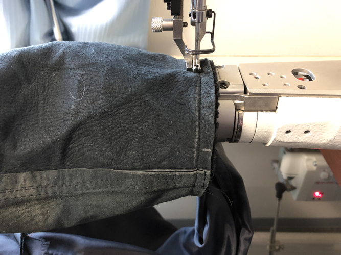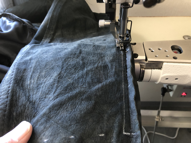 表から同じ縫製ラインを縫う箇所は、表に見える針穴を拾いながら縫製します。