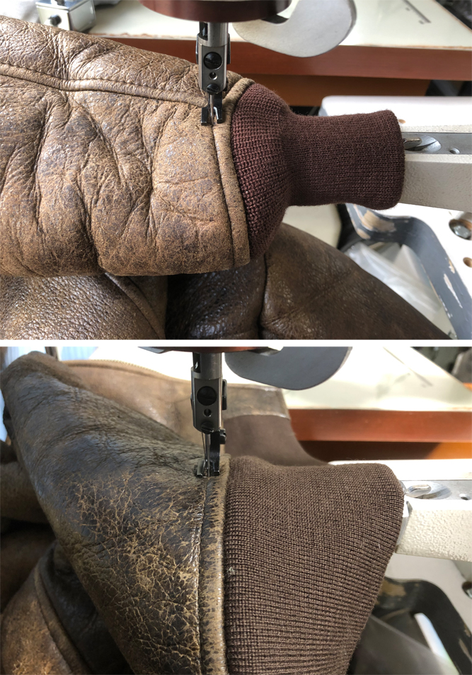 お客様からジャケットと一緒に送って頂いた新しいリブと交換です。