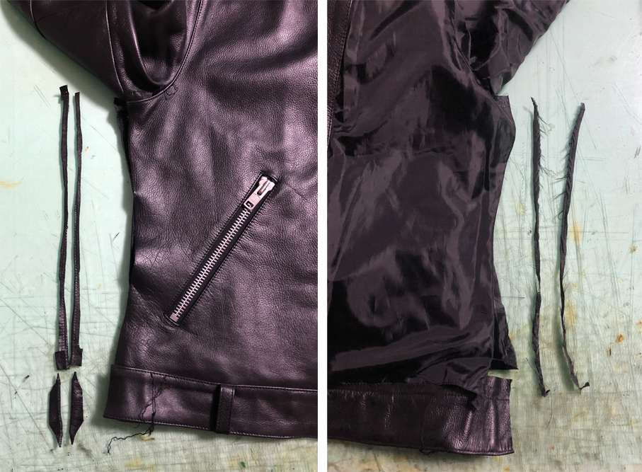 ※一般的な革ジャンよりも硬さ・厚みのある革ジャンのリサイズは、どうしても通常の革ジャンより手間がかかり、通常の料金より2割ほど割り増しになってしまう場合が多いです。