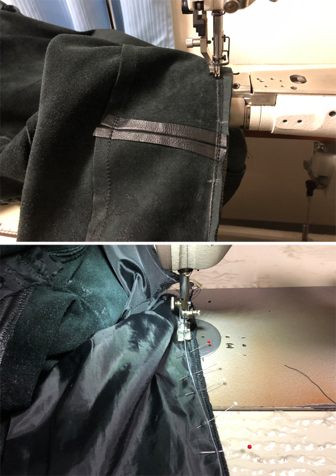 同じ縫製ラインを縫う箇所は、表に見える針穴を拾いながら縫製します。