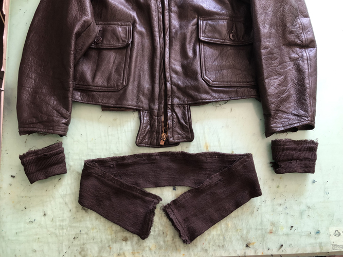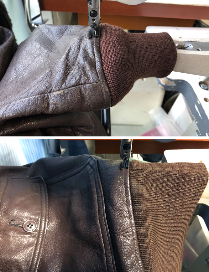 お客様からジャケットと一緒に送って頂いた新しいリブに交換です。